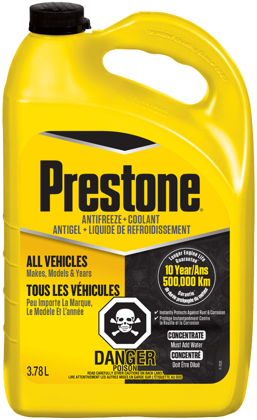 Optimized formula for All Vehicles; makes, models, years & fluid colors. Our patented technology provides instant protection to all engines, new and old. Optimizes engine temp, prevents freezing, PLUS protects parts from buildup & corrosion. While ordinary antifreeze+coolant only manages 2/3’s the job, Prestone’s Total Protection handles the complete job.