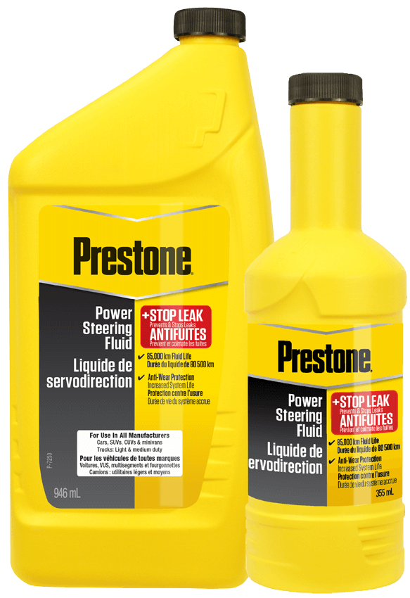Prestone® Power Steering Fluid + Stop Leak delivers increased system life, both preventing and stopping system leaks. Stop Leak additives renew, restore and condition seals in the power steering system. These seals harden and shrink over time which are the likely cause of leaks. The Stop Leak additives also prevent leaks by rejuvenating seals before they leak.